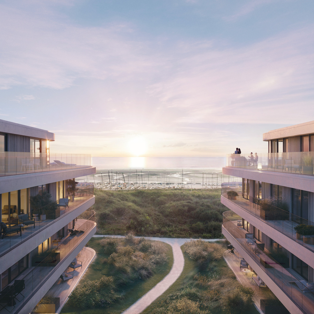 De organische lijnen van de gebouwen volgen het natuurlijke reliëf van de duinen, terwijl royale terrassen een adembenemend uitzicht bieden op de zee of de uitgestrekte natuur van Hardelot. Omgeven door duinen, bossen en glooiende landschappen, weerspiegelt Odunes een visie op wonen die rust, verfijning en verbondenheid met het landschap verenigt. Ontworpen door Arcas Architecten, is dit een plek waar architectuur én natuur samensmelten.